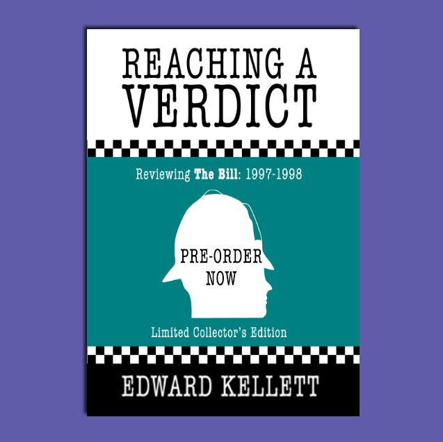 REACHING A VERDICT: REVIEWING THE BILL (1983-1989) features a Foreword by production scheduler Nigel J. Wilson and an Afterword by script editor Tim Vaughan. 256 PAGES, LAST COPIES IN STOCK. ALSO AVAILABLE GLOBALLY ON PAPERBACK OR EBOOK FROM AMAZON.